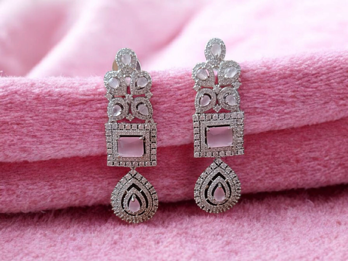 Elegant and timeless, these exquisite earrings are a true statement of refined beauty. Crafted with meticulous detail, the earrings showcase a dazzling array of sparkling embellishments, creating a captivating play of light. The design features a sophisticated arrangement of carefully placed stones, creating a striking visual impact. The earrings are adorned with a captivating drop, that will add a touch of glamour to any outfit. Each earring features a large, square-cut centerpiece, surrounded by a frame of smaller, shimmering accents. The intricate detailing extends throughout the design, ensuring a mesmerizing display of radiance. The earrings are perfect for special occasions, such as weddings, galas, or any event where you desire to make a lasting impression. They also make a thoughtful gift for a loved one. These earrings are sure to become a treasured addition to any jewelry collection. Embrace the beauty and allure of these stunning earrings and elevate your style with their timeless charm. Each earring is expertly crafted with a focus on both aesthetics and comfort, making them a perfect blend of glamour and wear ability. The secure closure ensures they stay in place, allowing you to move with confidence and grace. These earrings are a celebration of elegance and sophistication, designed to make you feel like the best version of yourself. Make a statement and let your inner beauty shine with these extraordinary earrings.